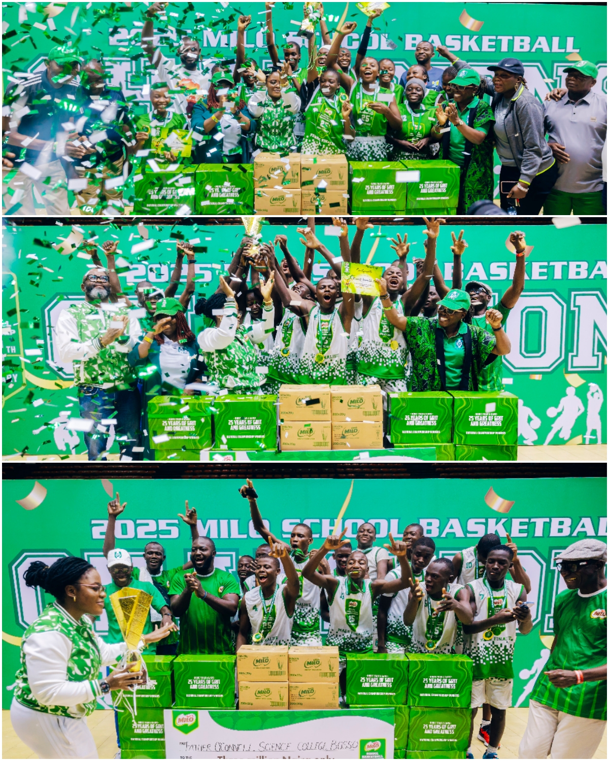 The 25th anniversary edition of the MILO Basketball Championship came to an exciting close at the Indoor Sports Hall of the National Stadium, Surulere, Lagos, with Father O’Connell Science College, Niger State, and Government Secondary School (GSS) Karu, FCT, emerging as national champions in the male and female categories, respectively.