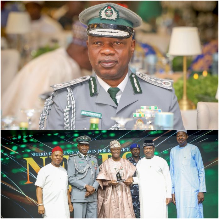 The Comptroller-General of Customs, Adewale Adeniyi, has received the Outstanding Revenue Collection Award at the 2025 Nigeria Excellence Awards in Public Service (NEAPS), held on Sunday, 7 December 2025, at the Banquet Hall of the Presidential Villa, Abuja.